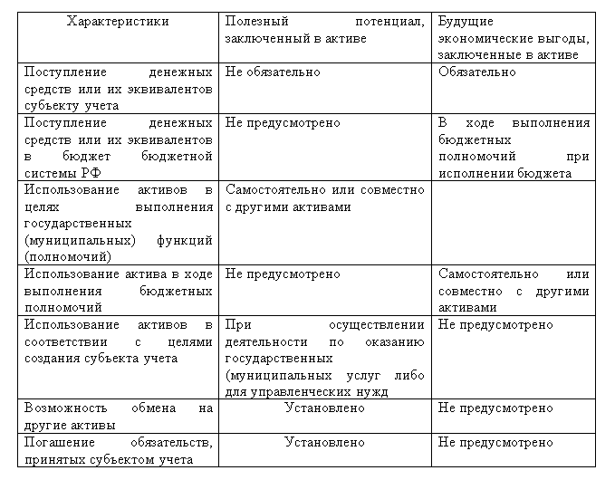 Таблица 3. Сравнительная характеристика понятий «полезный потенциал» и «будущие экономические выгоды» в соответствии с ФCБУ государственного сектора
