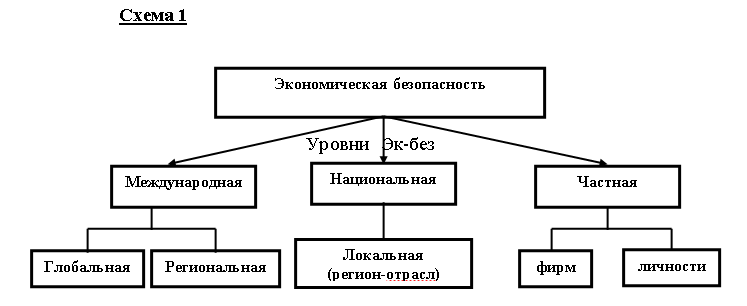 Следует отметить, что экономическая безопасность имеет три основных уровня определения (декомпозиция уровней экономической безопасности приведена на схеме 1):