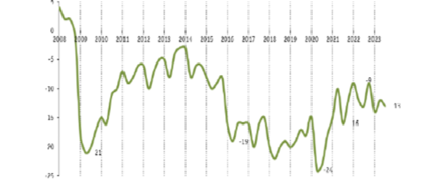 Рисунок 6. Динамика индекса предпринимательской уверенности на строительном рынке в РФ, %
