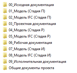 Директория 01_Модель (Стадия П), может содержать как информационную модель строительного объекта, выполненную в каком-то одном программном обеспечении, что является довольно редким явлением, так и содержать набор директорий, включающих компоненты модели, разработанные в различном ПО.