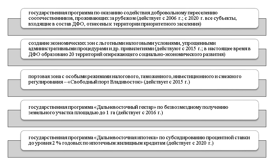 Заметим, что обозначенные проекты, реализуемые в ДФО, во многом сводятся к стимулированию миграции населения, т.е. привлечению к переезду в субъекты РФ, входящие в ДФО, для преодоления остро сложившегося демографического кризиса. Однако только проектов макроэкономического характера недостаточно, поскольку население заинтересованно не только в достойной заработной плате, но и проживании в комфортной городской среде, в связи с чем каждый субъект РФ, сталкивающийся с демографическими проблемами и последствиями кризисов рождаемости, нуждается в формировании комфортной городской среды и дворовой (придомовой) территории.