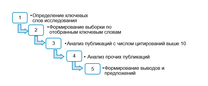 На первом этапе внимание уделялось публикациям, имеющим число цитирований от 10, далее анализ проведен по оставшимся публикациям.