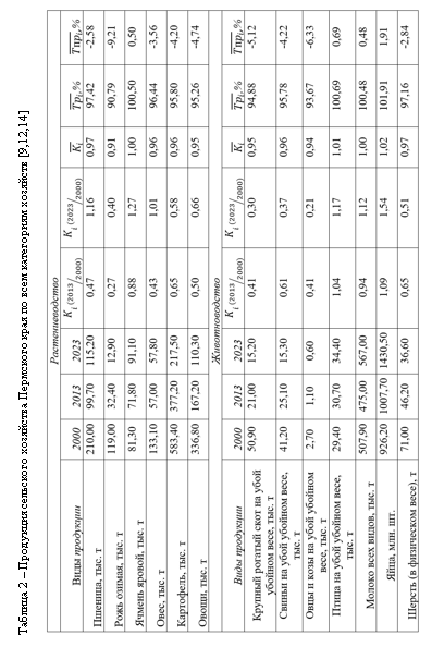 Таблица 1 - Объем и индекс производства сельскохозяйственной продукции Пермского края за 2023 г. [12,14]