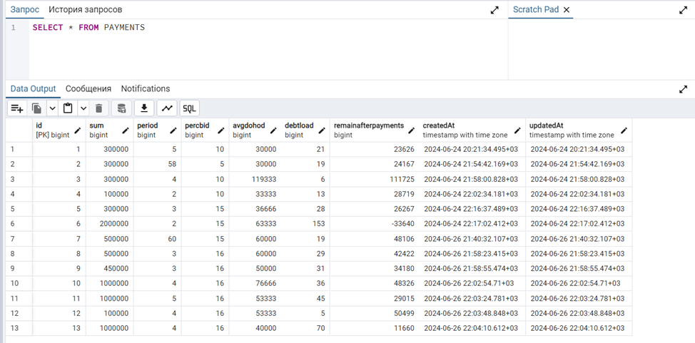 При разработке программного средства было реализовано решение, позволяющее сотруднику банка скачивать отчет напрямую из интерфейса программного средства, не заходя в базу данных и не используя скрипт для получения данных. В зависимости от показателя долговой нагрузки пользователю также выводится предупреждение с различными сообщениями.