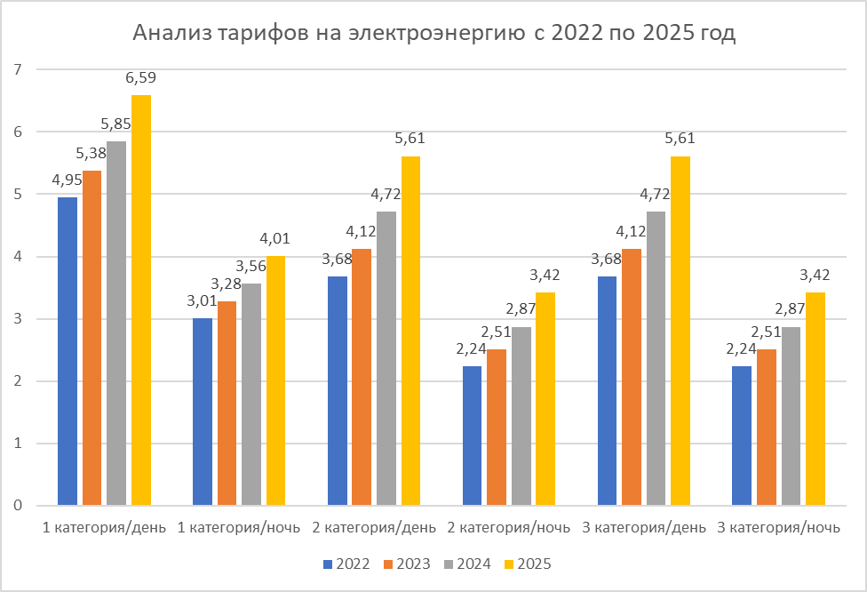 Рис. 1. Диаграмма изменения тарифов на электрическую энергию в период с 2022 по 2025 гг.