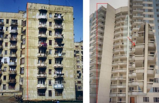 Обзор свидетельствует о том, что на территории России и за рубежом, имеется множество зданий и сооружений, испытывающих значительные неравномерные деформации. Одним из методов восстановления эксплуатационной надежности является подъемом просевшей части здания системой домкратов. Основными причинами кренов здания является неверный учет работы основания. Например, неравномерные осадки грунтового основания, оползневые процессы и т.п. Так, в ФРГ в земле Саарлэнд основная причина значительных неравномерных осадок – шахтные подработки. На Юге РФ одной из основных причин – просадочные грунты и оползневые процессы на склонах [5-8] (рис. 1).