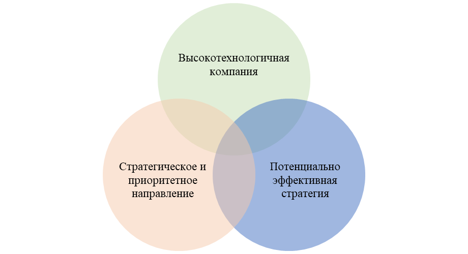 Высокотехнологичная компания – ключевым признаком является разработка и (или) применение инновационных технологий, обеспечивающих значительное конкурентное преимущество на рынке. Данный признак можно охарактеризовать как «технологический».