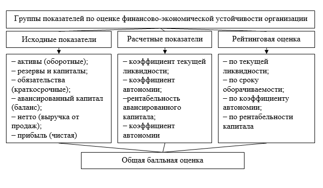 Данный анализ проведён по модели рейтинговой оценки финансово-экономического положения органических хозяйств. Группы показателей представлены на рисунке 1.