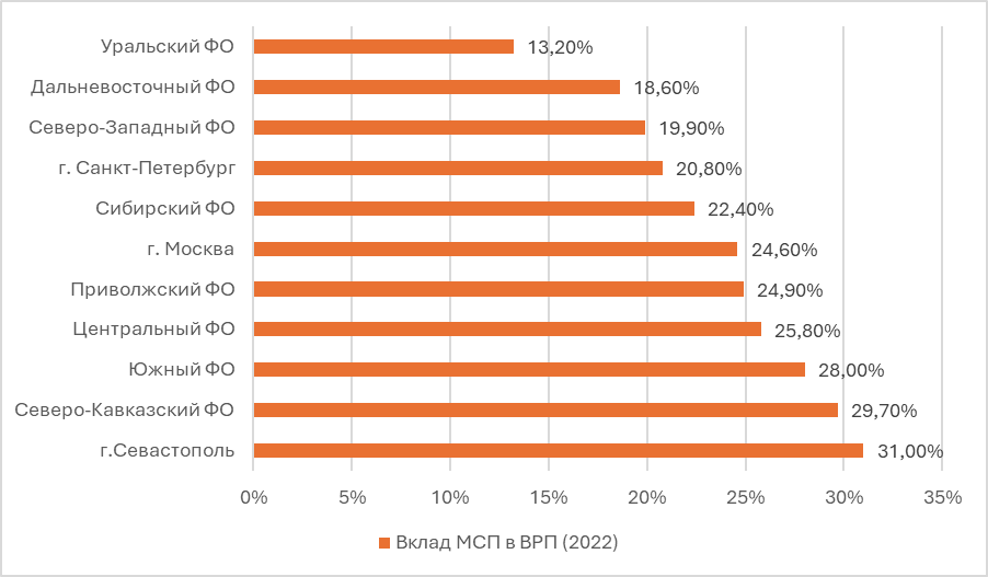 Доля добавленной стоимости в зарубежных странах, генерируемая малым бизнесом — 52% вклада. Данное направление является ключевой точкой роста для Российской Федерации (рис.5).